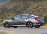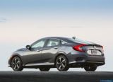 The 2016 Civic suspension system provides agile and direct handling that puts the Civic at the top of its class, and in the league of benchmarked European luxury-class competitors. The system uses a combination of front MacPherson struts and an all-new rear multi-link with new rigid subframe. Using a strut-style front suspension improves the room available for crash reinforcement, and the multi-link rear suspension helps maximize second-row seating and cargo space - all while also providing outstanding handling characteristics and ride quality. Front and rear stabilizer bars on all trims improve turn-in response while reducing body roll during cornering. The stabilizer bars are bonded to their mounting bushings and use low-friction connecting links for smoother operation. The 2016 Civic has a 14mm (0.6 in) lower center of gravity, helping to improve both handling agility and rollover resistance.